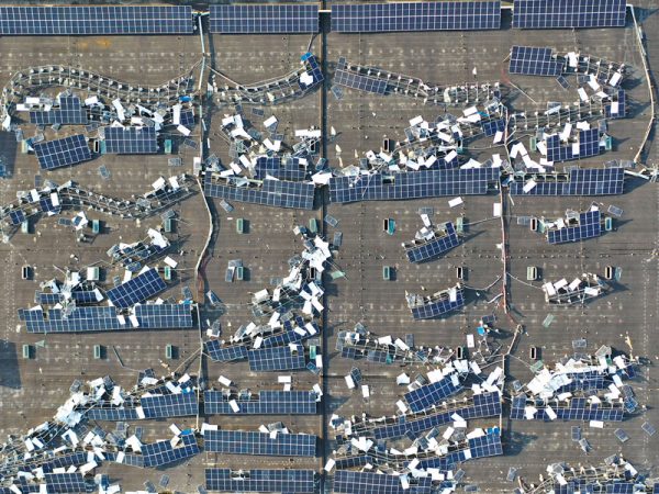 Rooftop photo voltaic panels destroyed by the violent wind in Nantong, China