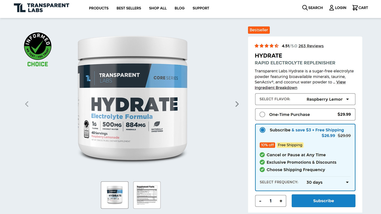Clear Labs, a model within the pure sports activities diet world, actually pumped up their sport on their Hydration Powder product web page.