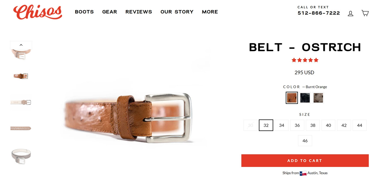 They’ve actually stepped up their sport with their Ostrich Belt product web page. As a substitute of the old-school strategy of 1 picture per coloration choice, they’ve created separate galleries for every coloration variant.